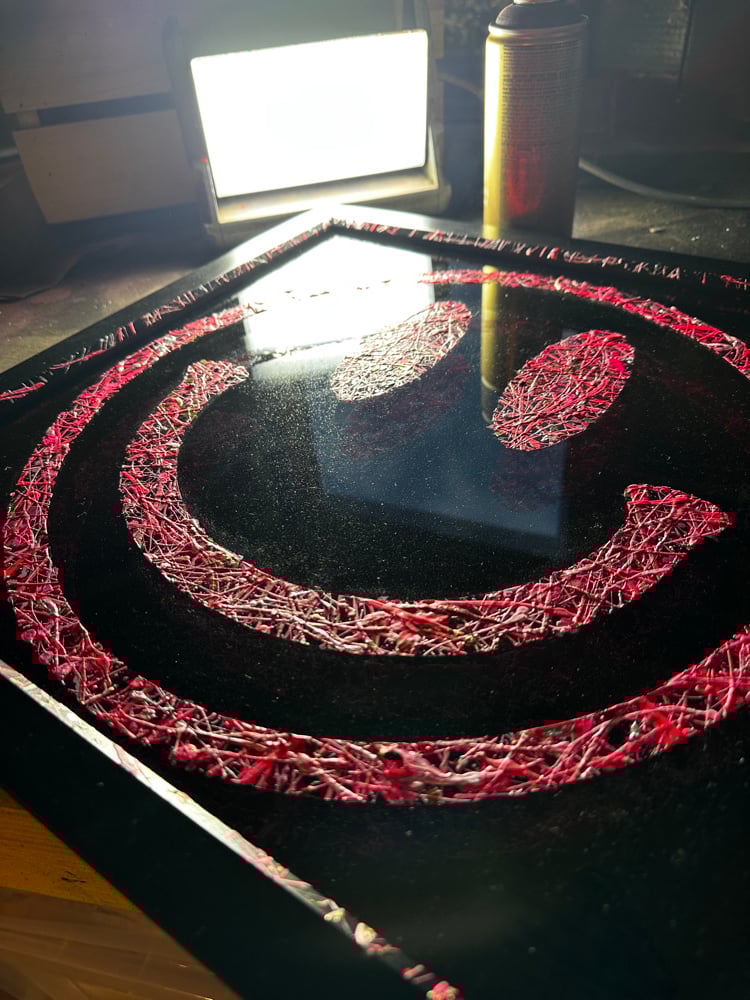 Hand sprayed on glass and acrylic.
